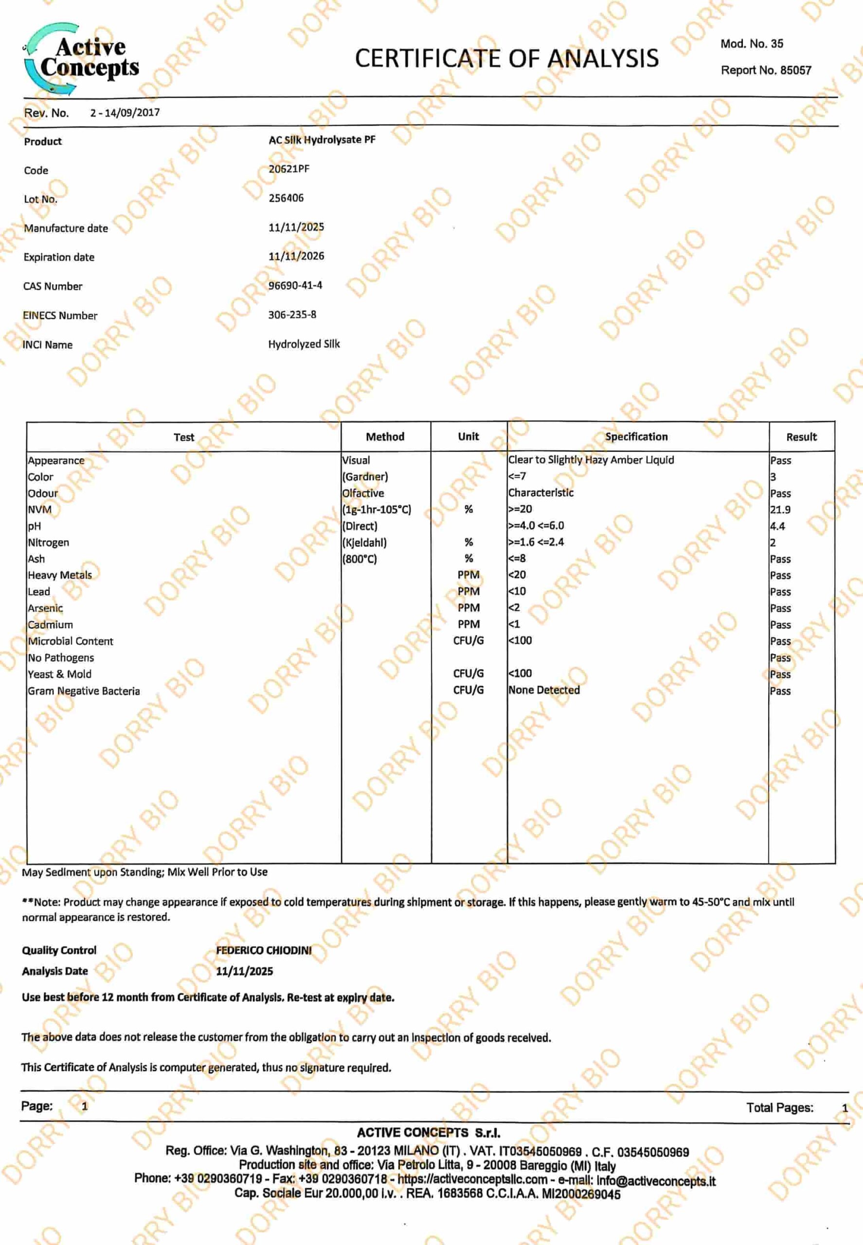 Nom commercial : Protéines de soie hydrolysées