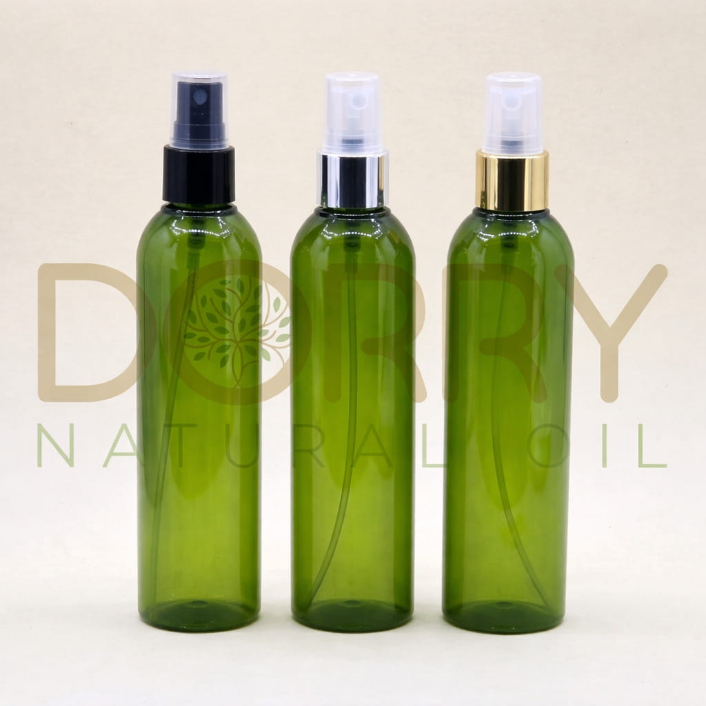 FLACON 250ML PET APLATIE VERT OLIVE AVEC SPRAY
