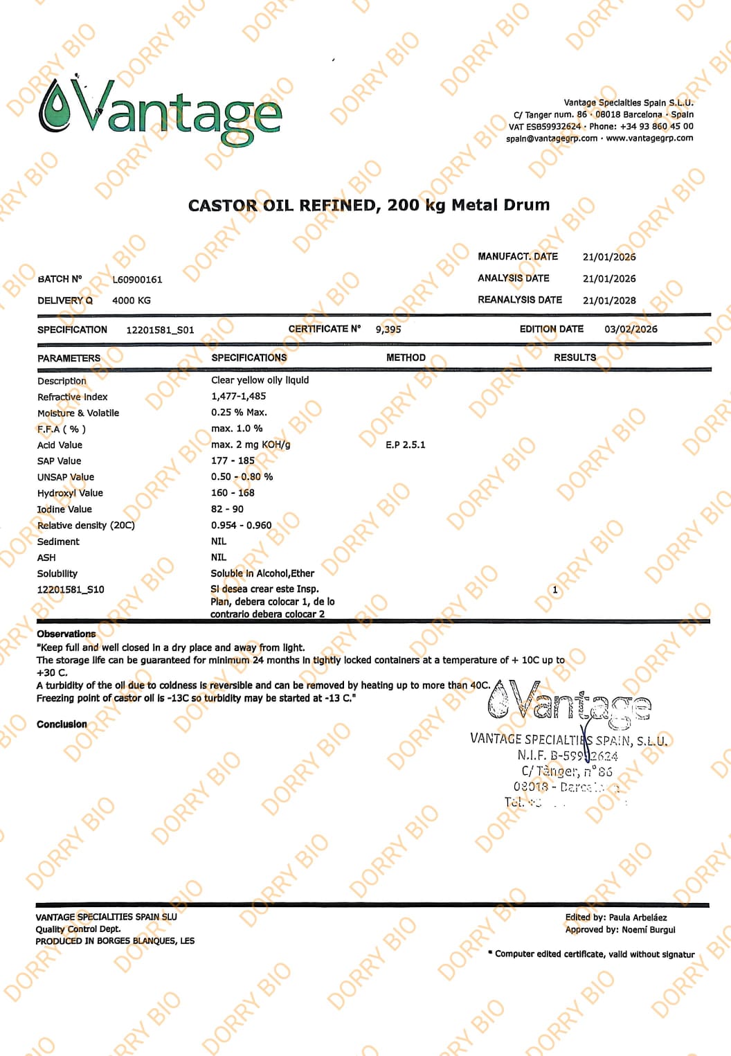HUILE VÉGÉTALE DE RICIN RAFFINEE